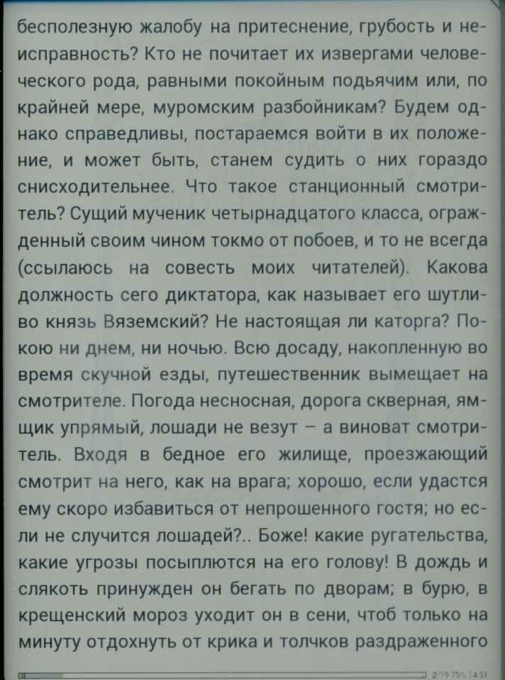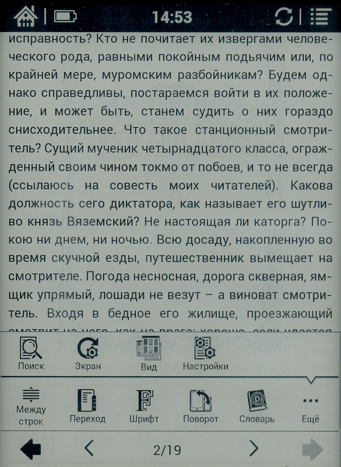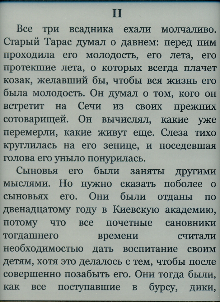 Дисплеи E-Ink Pearl появились достаточно давно, их развитие продолжается до сих пор, в Onyx Boox i63ML и Onyx Boox i62ML установлены дисплеи с высоким разрешением (которое производители не совсем справедливо называют HD). Плотность точек не очень высокая, особенно в сравнении с современными смартфонами и планшетами, но для чтения крупного текста ее вполне достаточно. Зернистость изображения становится заметной только при работе с картинкой высокого разрешения или в браузере, но и то, и другое — довольно специфические применения читалок электронных книг.