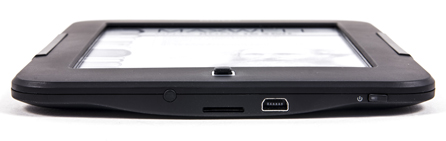 Разъемы для карты памяти microSDHC, подключения кабеля Mini-USB и клавиша управления питанием у обеих читалок собраны на нижнем торце корпуса. Остальные три грани корпуса не заняты ничем.