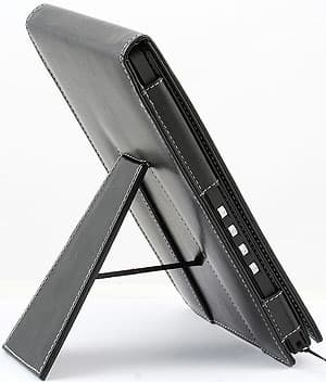 Как я уже упоминал, получили мы предсерийный вариант книжки. Впрочем, сама коробка уже явно была «серийной», а вот комплект поставки мог и измениться в деталях. Но что именно в нем должно было быть, на момент тестирования было определено. Итак, по списку: во-первых, сама книжка. Во-вторых, карта памяти емкостью 2 ГБ. В принципе, если ограничиваться только текстами, ей можно и не пользоваться (и немного сэкономить в плане энергопотребления), поскольку доступных пользователю во встроенной памяти 62 мегабайт достаточно очень для многого (большинство книг «тянет» менее чем на один мегабайт, так что 62 — целая книжная полка), но лишним оно не будет. Тем более, что карта памяти, как я уже говорил, изначально не пустая, а заполненная классическими произведениями. В-третьих, блок питания для зарядки устройства от обычной «домашней» сети переменного тока. Опять же — можно обойтись и без него, заряжаясь от компьютера (да и вообще — в сегодняшних условиях USB-зарядка вполне может оказаться у многих пользователей, поскольку такой разъем используется в коммуникаторах, многих плеерах, гарнитурах и т.п.), но даже просто в качестве бонуса это приятное дополнение. В-четвертых, карта ЛитРес на 50 рублей (на самом портале, правда, указано, что к устройству прилагается бесплатный купон на покупку трёх электронных книг, размещенных на сайте, но это примерно одно и тоже — даже вариант с тремя книгами судя по ценам чуть лучше). И, наконец, последний по списку, но не по значимости элемент комплекта — чехол. Необходимость его понятна — дисплей достаточно большой, да и само устройство тонкое при относительно большой длине и ширине, так что во избежание повреждений дополнительная защита необходима. Да и не только она — наличие у чехла ножки позволяет при наличии поблизости стола устанавливать книжку на него как на пюпитре и т.п.