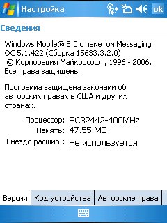 - Операционная система Microsoft Windows Mobile 5.0 (AKU 3, русифицированная)