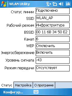 Для обеспечения работы с быстрыми беспроводными сетями в новинку установлен модуль WiFi стандарта 802.11b/g. Поиск доступных точек и подключение к ним происходит без ошибок. Вся необходимая информация и настройки модуля находятся в приложении WLAN Utility.