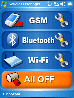 Из фирменного программного обеспечения на экране Today находится неприметный значок утилиты Wireless Manager — фирменной замены стандартного менеджера беспроводных интерфейсов операционной системы. Того богатства настроек и приложений, что было на экране Today, например, у E-Ten M600, у Orsio g735 нет.