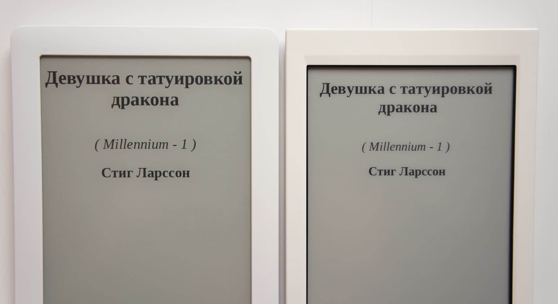 На снимке слева — экран PocketBook Touch, справа — Sony Reader PRS-T1: