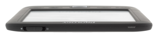 Все элементы управления Prology Latitude I-601 механические, здесь нет никаких сенсоров. Клавиши традиционно расположились в нижней части лицевой панели под экраном. Ход клавиш мягкий. Их пять, и назначение четырех из них определено, по мнению производителя, наиболее часто используемыми функциями ридера. Кнопки отвечают за масштабирование текста, ориентацию экрана, переходу к музыкальному проигрывателю и возврату на предыдущий уровень меню. Пятая, центральная клавиша, представляет собой пятипозиционный джойстик, нажатие в центр которого, исполняет функцию подтверждения выбора — аналог Enter. Поначалу смущение вызывает отсутствие специально выделенной клавиши для выхода в главное меню — «Домой», однако после прочтения инструкции оказалось, что такая функция имеется, и выполняется она по длительному нажатию и удерживанию клавиши «Назад». Нормальное решение, позволившее не перегружать чрезмерно кнопками поверхность устройства. Наличие пятипозиционного джойстика и вовсе вызвало было восторг, однако его техническое исполнение тут же омрачило всю радость. Помимо того, что клавиша нажимается по кругу во всех местах, что частенько приводит к ошибочным и даже двойным нажатиям, так еще и края самой клавиши полностью утоплены внутрь корпуса, что делает совершенно неудобным обращение с ней на ощупь. Особенно сильно это сказывается в верхней части джойстика, где палец вообще перестает нащупывать грань кнопки и часто жмет мимо клавиши прямо на корпус. Неудачное исполнение данной пятипозиционной клавиши это, пожалуй, единственное, что омрачает удовольствие от знакомства с дизайном Prology Latitude I-601.