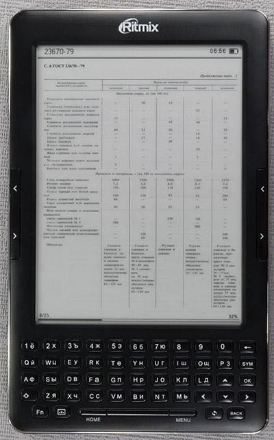 Что касается «литературных» форматов, то устройство поддерживает все широко распространенные. Не слишком порадовало очень долгое (несколько минут!) время открытия больших книг в формате ePub. Что касается формата Mobi, то здесь никаких претензий к Ritmix у нас не обнаружилось: переход по ссылкам оглавления происходит корректно, «верстка» также не вызывает нареканий.