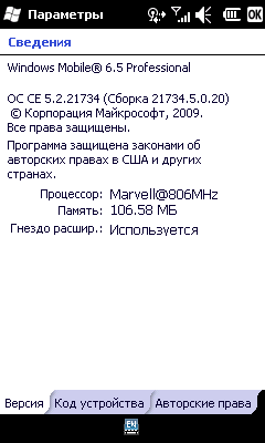 - Операционная система Windows Mobile 6.5 Professional (21734.5.0.20);