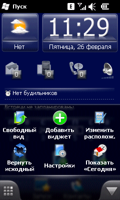 Spb Mobile Shell — визитная карточка компании разработчика и одна из наиболее часто встречающихся оболочек экрана Today. Программа предназначена для ускорения доступа к наиболее часто используемым приложениям и инструментам операционной системы. Интерфейс с крупными значками ориентирован на пальцеориентированный ввод. По правде говоря, Windows Mobile 6.5 изначально обеспечивает схожий уровень функциональности, да и получить доступ в меню стало проще с появлением отдельной аппаратной клавиши. Но Spb Mobile Shell выглядит лучше, выводит больше полезной информации на главный экран и имеет множество различных вкладок и окошек. Чего стоят только три различных окна с контактами, плюс вкладка с последними вызовами, и два окошка с прогнозами погоды! К тому же, программа предоставляет бесплатно. Так почему бы ей не воспользоваться?