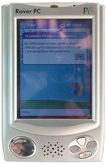 Уделим несколько строк описанию экрана. Изначально экран можно отнести к достоинствам данного устройства. Судите сами: диагональ экрана равняется аж 3,9 дюйма (79x59 мм). На практике все не так хорошо, как могло бы быть. Во-первых, в глаза сразу бросается очень низкая яркость подсветки. Даже в сравнении с бюджетными компьютерами (например, Mitac Mio или NEC MobilePro) чувствуется явное преимущество иностранных конкурентов. Яркости экрана Rover'а бывает достаточно только в очень слабо освещенных помещениях. А так, даже при комнатном освещении, постоянно хочется повернуть колесико регулировки яркости, но она и так уже максимальна. Во-вторых, из-за больших размеров матрицы, даже если специально не вглядываться, бывает видна «сеточка» пикселей. Хотя, по большому счету, это логично: размеры экрана (в сравнении с другими PocketPC 2002) увеличены, а разрешение (и количество точек) осталось прежним. Естественно, что были увеличены и размеры пикселей (каждой отдельно взятой точки), поэтому и «сеточка» стала сильно заметнее.