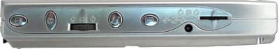 Во-вторых, взгляд радует большое количество разных элементов управления устройством (благо размеры это позволяют). На левом торце можно найти пустую кнопку с каким-то логотипчиком, напоминающим губы (по умолчанию она ни за что не отвечает, но в будущем ей можно будет присвоить совершенно произвольную функцию), далее идет кнопка включения и выключения питания, чуть ниже находится «экшн» (его можно крутить вниз-вверх и нажимать). После колесика прокрутки идут еще две кнопки, первая из которых «дефолтом» настроена на открытие главного меню, а на вторую «повешен» диктофон, но все это можно настроить по своему вкусу. В общем, пока все более-менее стандартно, но дальше — больше. Немного непривычно, что гнездо для подключения блока питания находится не рядом с интерфейсным разъемом, а здесь же — на левом торце. Хорошо это или плохо — судить вам, мы же просто обращаем на это ваше внимание. Но значительно более интересную вещь можно увидеть еще ниже. Сначала нам даже показалось, что тут по какой-то ошибке установили второй action :-) размером чуть меньше первого. Но, как выяснилось, все совсем не так. Это, оказывается, регулятор яркости подсветки экрана. С одной стороны, за такое нововведение производителей можно не только похвалить, но и поругать: сразу становится ясно, что программно, тем более, автоматически, яркость не регулируется. Но, как показала практика, у такого подхода есть и свои плюсы. Чтобы уменьшить (или увеличить) яркость, достаточно одного легкого движения большого пальца (в случае если КПК лежит в левой руке). В свое время на Casio E-125 нам очень нравилось, что яркость и контрастность экрана можно было регулировать, удерживая action и нажимая на стрелочки джойстика. Подобного потом не было ни в одном PocketPC 2002, поэтому внешнее колесико регулировки может многим, как и нам, прийтись по душе.