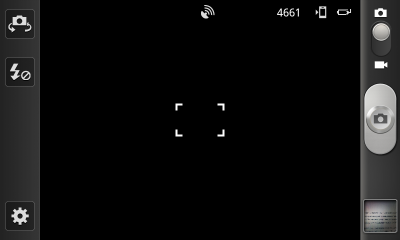 Интерфейс программы управления камерой легок в освоении: справа имеется переключатель режима работы камеры с видеосъемки на фото и обратно, а также крупная клавиша «спуска затвора», чуть ниже находится уменьшенное изображение последнего снимка, коснувшись которого можно попасть в фотоальбом. По левому краю окна программы расположены: переключатель между двумя камерами, кнопка управления работой вспышки и кнопка вызова основного меню настроек. Последнее организовано не самым удобным образом — в виде выпадающего длинного списка, который приходится долго прокручивать, чтобы добраться до нужного пункта. Краткий список настроек выглядит следующим образом: работа вспышки, режим съемки, коррекция экспозиции, работа автофокуса (автомат, макро, распознавание лиц), таймер, эффекты (негатив, сепия, оттенки серого), разрешение, баланс белого, ISO, экспозамер, стабилизация, качество изображения, теги GPS.