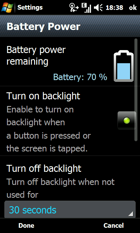 Помимо перечисленных изменений, существенно переработаны все остальные аспекты работы с ОС. Изменениям подверглись почти все приложения, которые по умолчанию присутствуют в Windows Mobile. Эти модификации преследуют абсолютно определенную цель: сделать интерфейс более доступным для управления без стилуса. Выражено это в виде увеличенных пунктов меню, убраны линии прокрутки, вместо них повсеместно внедрен Screen Drag (прокрутка в любом месте экрана). Мелкие чекбоксы и радиокнопки заменены на более крупные. Ниже приведены скриншоты того, что получилось: