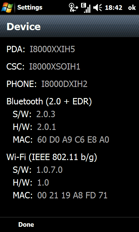 Bluetooth 2.0 + EDR поддерживаемые профили (GAP, OPP, SPP, SDAP, FTP, SAP, HSP, HFP, BPP, GAVDP, AVRCP, A2DP, HID, PAN) дополнительно отображены на скришноте. Стек используется от Microsoft, о возможности установки оного от Broadcom информации на данный момент нет.