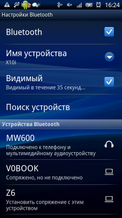 Печально, что в X10 нет FM-радиоприемника, так как им оснащаются даже самые дешевые телефоны Sony Ericsson. Это обстоятельство подвигло автора к приобретению беспроводной стереогарнитуры Sony Ericsson MW600. Акссесуар обладает следующей функциональностью: поддержка профилей Bluetooth для передачи стереозвука, речи, данных о вызове, управления плеером и телефоном, встроенный FM-радиоприемник, стандартный разъем 3,5 мм для наушников. Заряда аккумулятора хватает примерно на 8 часов постоянного использования, его пополнение осуществляется посредством подключения зарядного устройства к порту microUSB. Единовременно в памяти гарнитуры может храниться информация о четырех связанных устройствах, как телефонах, так и компьютерах. К недостаткам MW600 можно отнести отсутствие возможности сохранения списка радиостанций (каждый раз частоту нужно настраивать вручную). Также большие претензии вызывает сенсорная панель регулировки громкости, которая, несомненно, весьма технологична, но также, как и все сенсорные кнопки на коммуникаторах, проигрывает обычным аналогам, воплощенным в пластмассе. В итоге для того, чтобы сделать звук громче или тише, приходится каждый раз доставать гарнитуру из кармана и несколько раз тереть пальцем её бок. OLED-дисплей гарнитуры яркий и контарстный, но сама она малоинформативна: например, в случае с Х10 не показываются названия играющих треков, а при вызове отображается не имя контакта из списка, а только телефонный номер (при использовании с SE W380 вся информация отображается корректно).
