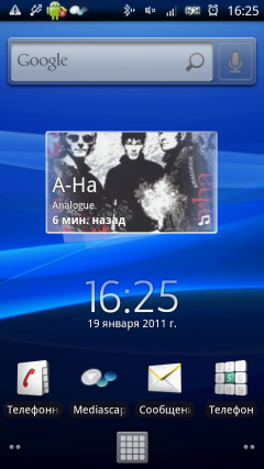 После обновления прошивки, основной экран системы стал состоять из пяти вкладок, в старой версии платформы их было только три. Предустановленные виджеты занимают две вкладки, остальные три — полностью свободны. На главной расположены: часы, Timescape, поиск Google, а также иконки телефонной книги, списка вызовов, сообщений и Mediascape. На второй вкладке: виджет браузера с изображениями недавно посещенных сайтов и историей, панель управления беспроводными интерфейсами и яркостью экрана. Фирменных виджетов Sony Ericsson немного, в основном их предоставляют сторонние программы.