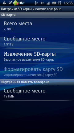 - Оперативная память 384 МБ, флеш-память 1 ГБ (доступно 465 МБ), карта microSD 8 ГБ;