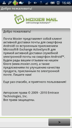 В памяти коммуникатора также установлены несколько приложений Moxier: календарь, почта, контакты, задачи. Все эти программы связывает одно — это клиенты для корпоративного сервера Microsoft Exchange ActiveSync. Последней в списке идет программа для резервного копирования программ, данных и прочего содержимого памяти телефона. Во всем наборе програмного обеспечения недостает лишь клиента для удобной работы с RSS-потоками.