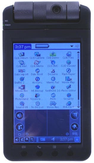 По конструкции корпус представляет собой традиционную для Sony раскладушку: на одной половинке расположен дисплей, на другой - клавиатура. Если же вам более привычен бесклавиатурный вариант КПК, то он получается в течение нескольких секунд: нужно развернуть дисплей на 180 градусов и сложить обе половинки. Что касается дисплея, в качестве которого используется трансфлективная TFT матрица, поддерживающая отображение 65536 цветов при разрешении 320 х 480 пикселей, то его можно считать оптимальным решением сегодняшнего дня. По крайней мере, это максимум для платформы Palm, и в два раза больше, чем у Pocket PC. Использование разрешений вроде 640 х 480 у Sharp, и даже 800 х 600, на наш взгляд, еще преждевременно.
