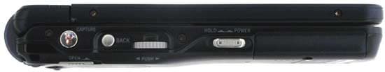 Как и следовало ожидать, функциональность компьютера на высоте, поэтому не удивительно наличие в нем огромного количества органов управления и индикации, равномерно заполонивших свободное место на корпусе компьютера. На левой боковой панели расположено окошко инфракрасного порта, рядом с которым приютились два светодиода. Один из них красным цветом сигнализирует о процессе записи видео или аудио, второй же загорается зеленым в процессе зарядки. Там же расположена кнопка спуска затвора камеры. Кнопка Back и привычное колесико Jog Dial позволяют вполне комфортно осуществлять навигацию при помощи только одной руки по любым приложениям, включая лончер от Sony или Palm. Ниже расположен слайдер (совмещенный с кнопкой Hold), который отвечает за включение/выключение компьютера.
