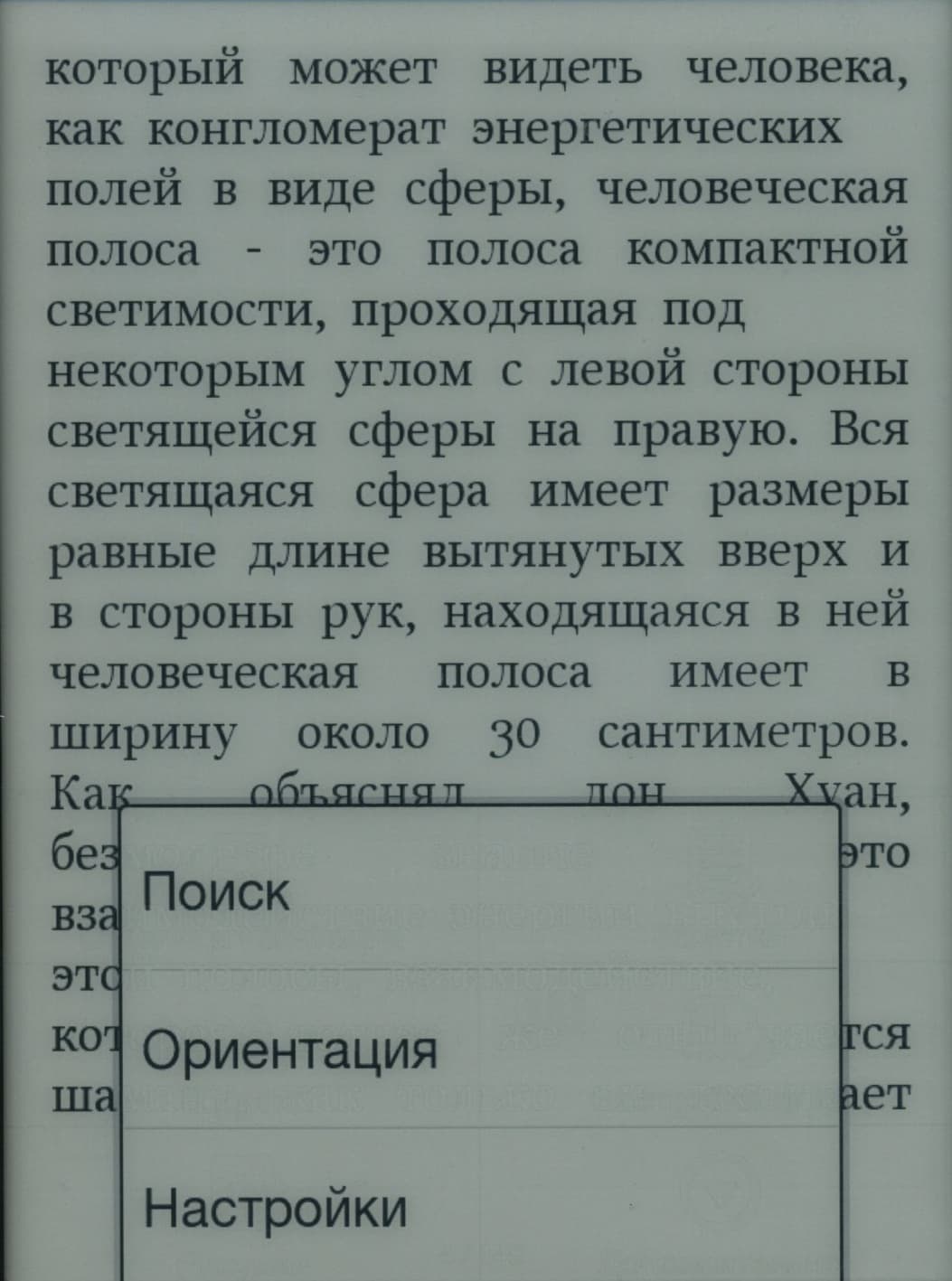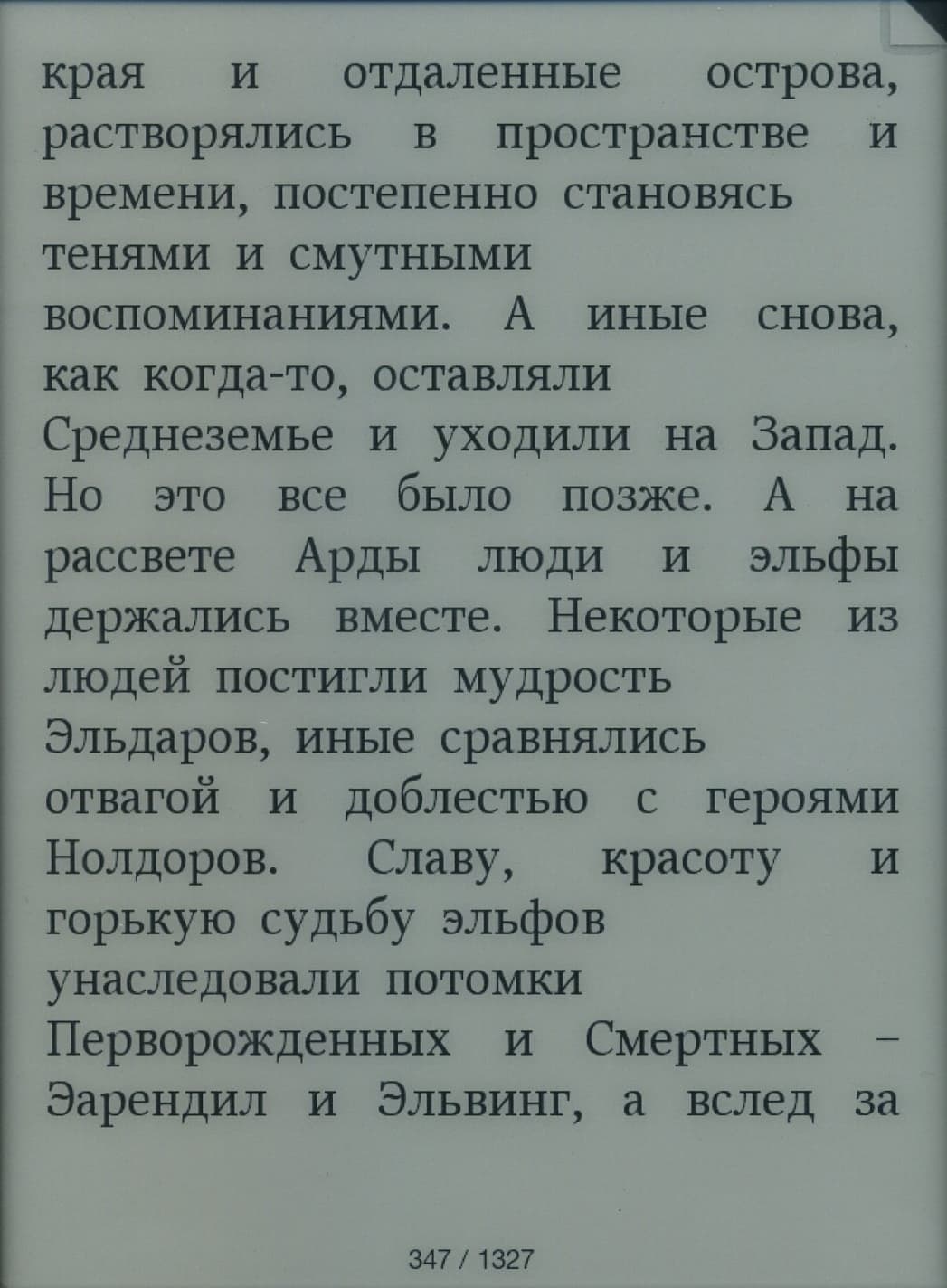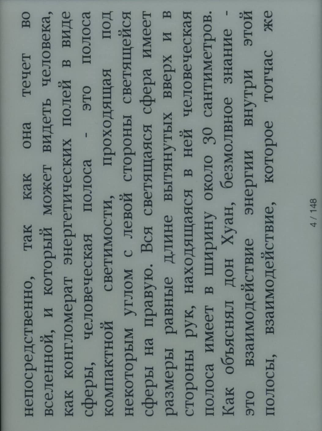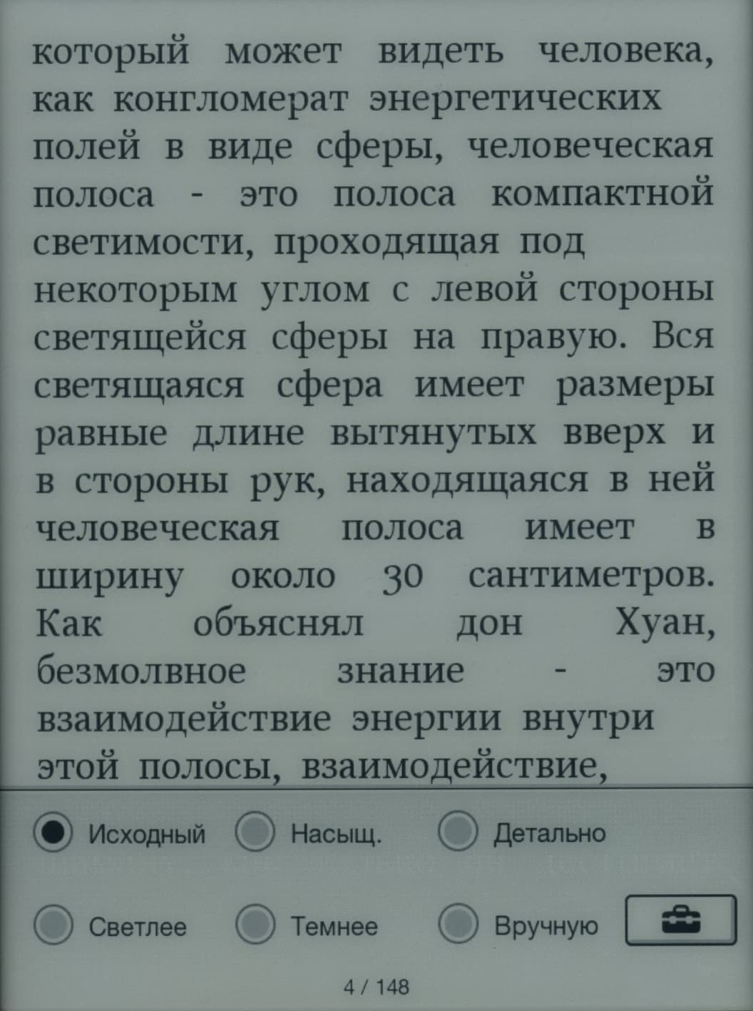Во время чтения страницы можно перелистывать как нажатием кнопок «Вправо»/«Влево» (это особенно удобно левше, так как кнопки оказываются ровно под большим пальцем), так и простым горизонтальным движением пальца по экрану. Боковых клавиш для перелистывания здесь, к сожалению, нет — а ведь они так бывают удобны при вертикальном расположении книжки. Правда, при такой минимизации размеров корпуса и рамки вокруг экрана, сомневаюсь, что была бы возможность их тут разместить.
