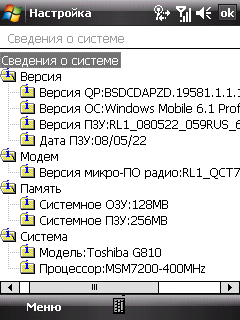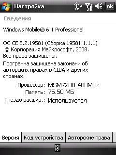 - Операционная система Microsoft Windows Mobile 6.1 Professional (сборка 19581.1.1.1);