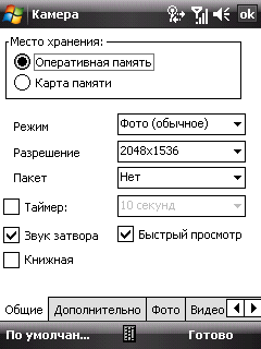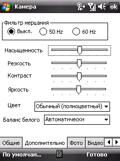 Основные настройки фотокамер вынесены на главное окно программы. Жаль, иконки очень маленькие и пальцем в них попасть затруднительно. Впрочем, перо всё равно придется достать для погружения в меню детальных настроек камер. Среди них: режим фотографирования, разрешение, размещение снимков, баланс белого, эффекты съемки и детальные настройки яркости, контраста, насыщенности и резкости.