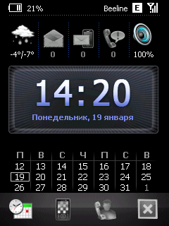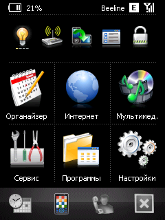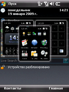 В качестве базовой и основной программной надстройки над Windows Mobile в Toshiba G810 используется Spb Mobile Shell. Его задача — обеспечить удобное управление компьютером с помощью пальца. Для этого основные индикаторы, функции и программы собраны в нескольких окнах, между которыми пользователь перемещается пассами пальца. За вызов главного окна программы отвечает одна из сенсорных клавиш на лицевой панели компьютера. При этом все остальные приложения переходят в фоновый режим работы.