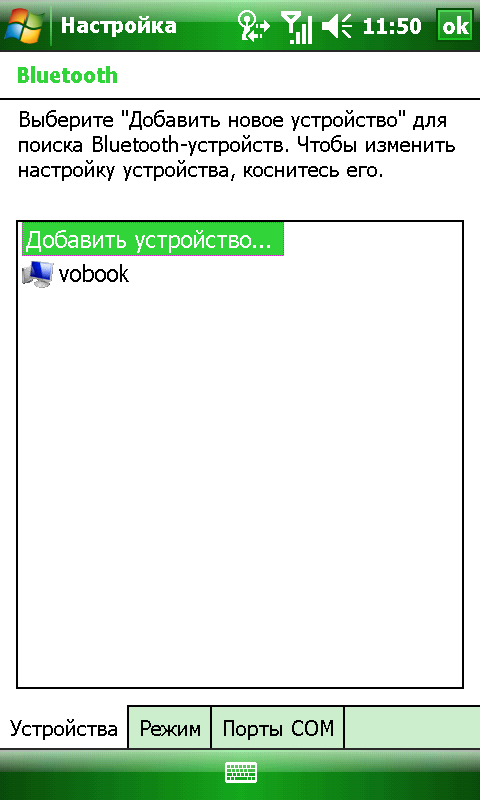 Обмен данными с помощью модуля Bluetooth управляется и организуется при участии встроенного в операционную систему стека Microsoft. Он не отличается дружественным интерфейсом, но обеспечивает всю необходимую функциональность, как то: обмен данными, модемный доступ, эмуляция последовательного порта и подключение беспроводной стереогарнитуры.