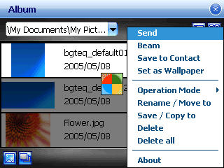 Photo Album — замена стандартной программе просмотра фотографий и видеороликов WM5.0. Отличается медленной загрузкой и долгим поиском файлов. Из программы можно активировать фотокамеру и запустить фоторедактор.