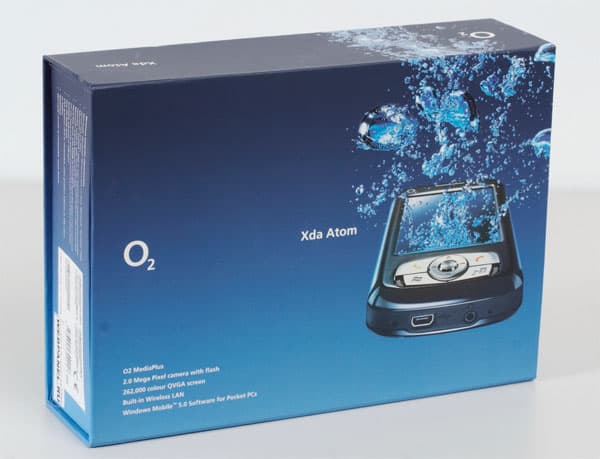 Упаковка XDA Atom представляет собой небольшую синюю коробку, поначалу удивившая своим приличным весом. Позже оказалось, что в нее встроен магнит(!), который удерживает крышку в закрытом положении. Более оригинальной упаковки (не считая коробочек Dell Axim) автору видеть, не доводилось.