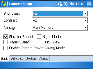 Приложение Camera может быть вызвано из меню системы, но гораздо удобнее воспользоваться отдельной аппаратной клавишей на правом торце коммуникатора. Камера может быть запущена в режиме фото, либо видео, в дальнейшем аппаратная кнопка будет отвечать за «спуск затвора». Джойстик, по-умолчанию, управляет зумом и режимами работы камеры. Центральная кнопкой запускается запись или захват снимка. Настроек камеры несколько, но основные – это качество фото и видео (разрешение). Из пяти режимов работы, первый — обычный режим фотокамеры, второй — MMC фото. Третий — художественное фото, четвертый и пятый – съемка видео.