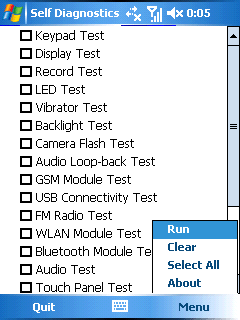 Self Diagnostics — тестирование и проверка всех узлов и компонентов коммуникатора. Особенной полезной программа будет при покупке устройства. Тесты можно запускать, как по отдельности, так и все целиком.
