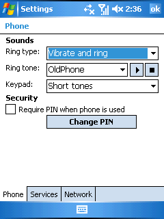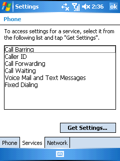 Настройки телефонных функций и работы в сети вынесены в отдельный апплет Phone. Автоматически сообщается о доступных сервисах мобильного оператора и их настройка. Мелодия звонка, вибровызов, смена PIN кода, выбор доступных радиосетей – базовые настройки любого сотового телефона.