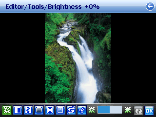 Photo Editor — удобный фоторедактор с несколькими полезными функциями. Заменить PhotoShop он не сможет, но быстро, на ходу, позволит обработать снимок. Помимо корректировки яркости, контрастности и прочего, можно немного развлечься. Добавить шаблон к портрету (доступно несколько образцов), либо поиграть с фотографиями друзей (растянуть лицо и т.п.). Затем получившееся произведение отправить по электронной почте, MMS, либо беспроводному интерфейсу.