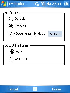Провод гарнитуры используется в качестве антенны для встроенного радио. Прослушивать радиопередачи можно через наушники, либо встроенные динамики. XDA Atom первая модель коммуникатора на основе Windows Mobile, которая оборудована встроенным радиоприемником. Качество приема хорошее в условиях прослушивания внутри помещения, автоматически находится 17 радиостанции (север Москвы). Слотов доступно 20, и при большем количестве радиосточников, придется добавлять станции вручную, удаляя предыдущие. Доступна запись радиопередач в форматах WAV или GSM610. Выгода сомнительная, с учетом занимаемого полученными файлами места. Качество приема в значительной степени зависит от расположения коммуникатора, а не гарнитуры. При работе, например при кликах по экрану, в наушниках слышны щелчки. В определенных случаях слышен неприятный шум в фоне, все это свидетельствует о сильных наводках на приемник от остальных компонентов компьютера.