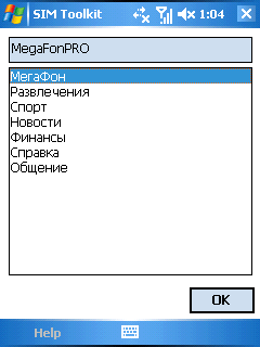 SIM Toolkit — меню SIM карты телефонного оператора и список соответствующих сервисов.
