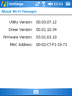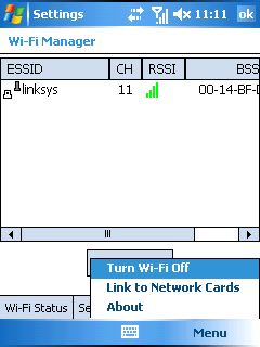 Под названием Wi-Fi Utility скрывается обычный менеджер ОС Windows Mobile, простой в настройках и использовании. Работа модуля Wi-Fi стабильна и подключение к сетям не вызвало нареканий.