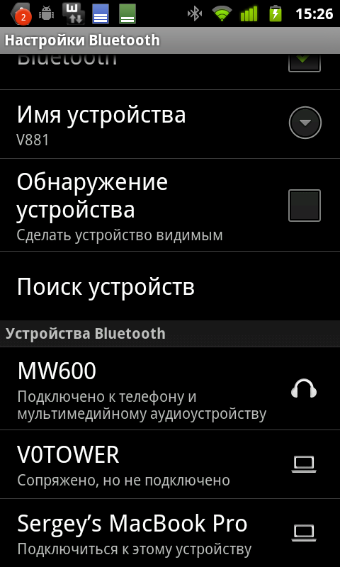 Также нет точных параметров модуля Bluetooth. Список поддерживаемых профилей работы следующий: AVRCP — управление воспроизведением музыки и телефонными вызовами, обмен объектами OBEX, доступ к адресной книге, передача голоса. Подключить коммуникатор в качестве модема по Bluetooth не удалось, впрочем, ZTE Blade+ умеет раздавать мобильный интернет по Wi-Fi и USB. Подключить мобильный компьютер к беспроводной гарнитуре Sony Ericsson MW600, наоборот, получилось. С ее помощью можно управлять воспроизведением музыки на коммуникаторе и отвечать на вызовы. Имеются следующие ограничения: не отображаются названия треков, время их воспроизведения, имена контактов из адресной книги (только телефонные номера).