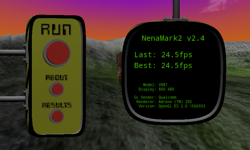 Тестирование графической подсистемы в NenaMark 2.2 продемонстрировало результат 24,5 кадров в секунду.