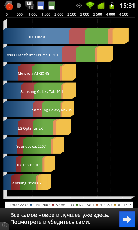 Выяснение производительности коммуникатора было проведено с помощью нескольких традиционных тестов. Их результаты, вместе с показателями конкурентов, приведены далее.