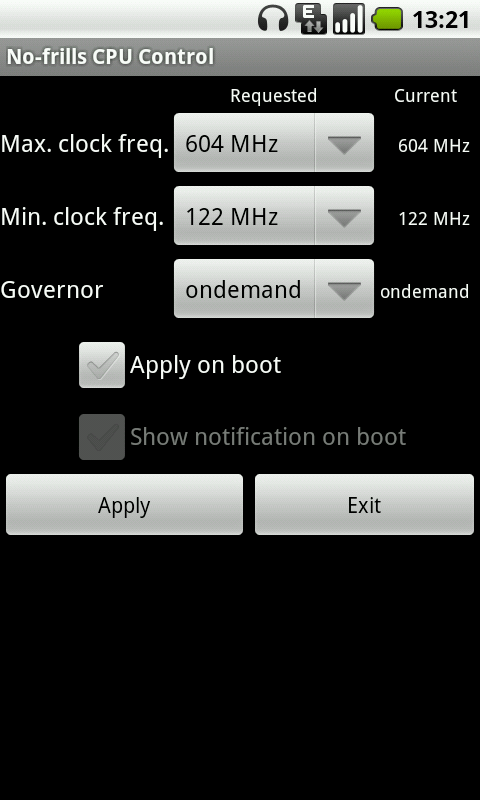 Настройки производительности устройства содержат пункты, непосредственно влияющие на работу системы и процессора, так что менять их нужно со знанием дела и с уверенностью в правильности своих действий. Здесь можно задать пределы рабочей частоты процессора, установить размер кэша виртуальной машины, включить или отключить JIT и выставить режим работы графической подсистемы вместе с различными эффектами и сглаживанием.