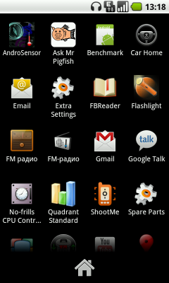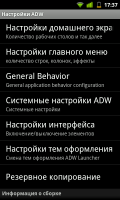 В качестве замены стандартному оформлению и основным экранам системы используется ADW.Launcher. Он позволяет более тонко настраивать вид всех вкладок и меню.