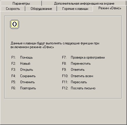 Закладка Режим «Офис» к большому моему сожалению оказалась чисто информационной — изначально была надежда, на то, что функциональные клавиши в этом режиме можно настраивать (как у Cherry), однако действительность оказалась более прозаичной.