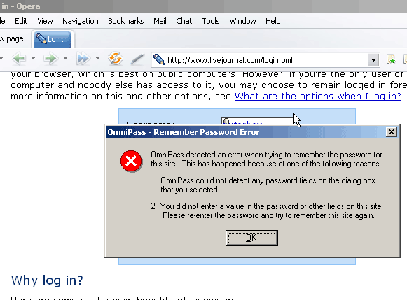 - под Opera попытка сохранить пароль (только вручную) вообще вызывает сообщение об ошибке: мол, пароли на страничке не обнаружены!
