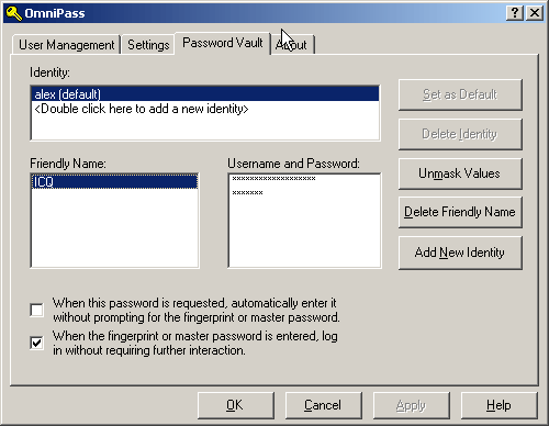 Отдельная история с ICQ: сама OmniPass не определяет, что в этом маааленьком окошке есть пароль. Вот если вбить пароль вручную и указать на него программе, то последующие входы будут обслуживаться замечательно.
