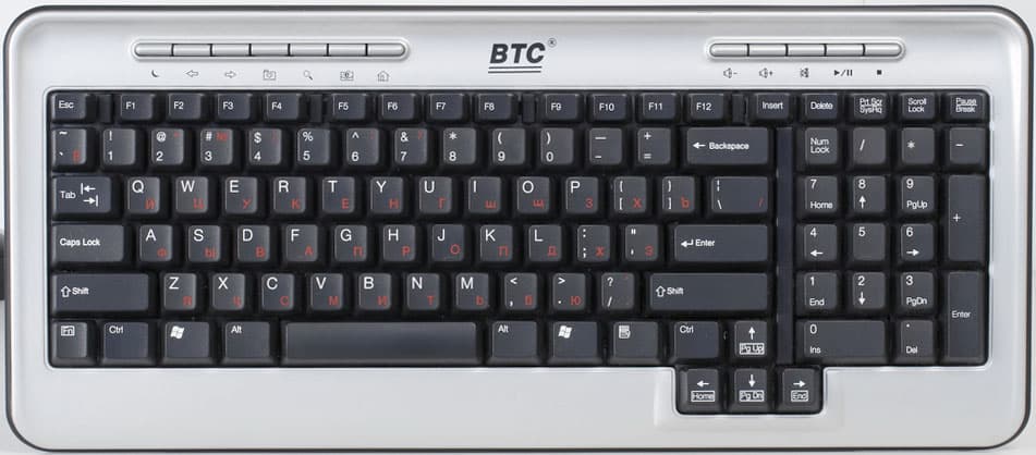 На самом деле, это 104-клавишная расширенная клавиатура Windows, к которой добавлен минимальный набор мультимедийных клавиш (2 группы в верхней части клавиатуры, состоящие из семи и пяти узких клавиш) - Механизм клавиш: Мембранный