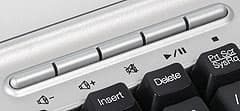 Зато очень плотно использовали место над дополнительной цифровой клавиатурой: сразу после групп функциональных клавиш идут перекочевавшие сюда Ins и Del, а затем традиционные 3 клавиши Print Screen, Scroll Lock и Pause/ Brake. Кстати, этот ряд клавиш сделан еще и тоньше, чем основной. Попасть по ним, впрочем, можно без проблем.