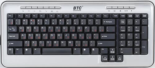 Мультимедийные клавиши представлены двумя группами совсем узких кнопок в верхней части клавиатуры по обеим сторонам от логотипа BTC. Нажимать их, прямо скажем, не то чтобы очень удобно, круглые кнопочки были бы лучше. В левой группе собраны кнопки для работы с браузером, почтой и поиском, а также кнопка перехода в спящий режим. В правой — клавиши управления звуковым проигрывателем. Впрочем, при помощи упомянутой выше программы, все их можно перепрограммировать и назначить все, что душе угодно. Например, я на кнопку поиска повесил выдвижение лотка CD-ROM, единственное, что меня теперь беспокоит, а что делать, если привода два, а управлять хочется каждым? ;)