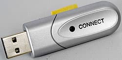 Приемник сигнала выполнен в минималистской манере и представляет собой опять же серебристый параллелепипед, напоминающий флэш-драйвы. На нем расположен единственный световой индикатор приема сигналов от клавиатуры и мыши, также являющийся кнопкой Connect настройки частотных каналов.