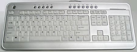 А больше отметить особо и нечего. Да, scissor, однако сам по себе данный механизм уже перестал быть чем-то из ряда вон выходящим. Стандартная раскладка тем более не располагает к тому, чтобы его описывать :) Приведенный на фотографии экземпляр не русифицирован, но на поступающих в продажу символы кириллицы будут. Отличающиеся по цвету от латинских, выполненные при помощи краски, что тоже для недорогих клавиатур давно уже обыденность. Клавиатуру можно похвалить за combo-интерфейс (USB, но при помощи входящего в комплект переходника ее можно подключить и к PS/2), однако это давно является приятной, но совсем не выдающейся возможностью. В принципе, еще понравилось крайне низкое энергопотребление: всего 5.2 мА, что на данный момент является рекордом (справедливости ради, не так много клавиатур мы протестировали в плане потребления энергии). Присутствует 13 дополнительных кнопок, но о них мы поговорим чуть-чуть позже — сначала познакомимся с «родной сестрой» этой клавиатуры.