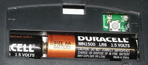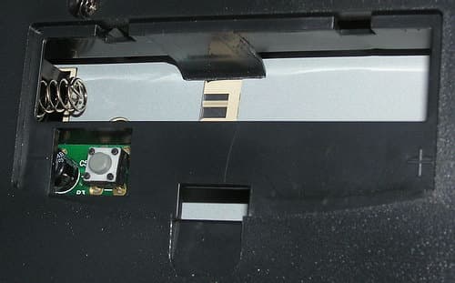 питается от двух элементов питания типа АА (обычные пальчиковые), в комплекте идет 2 батарейки, которые можно заменить на аккумуляторы. В батарейном же отсеке спряталась кнопка Connect для смены пары идентификационных кодов приемника/передатчика.